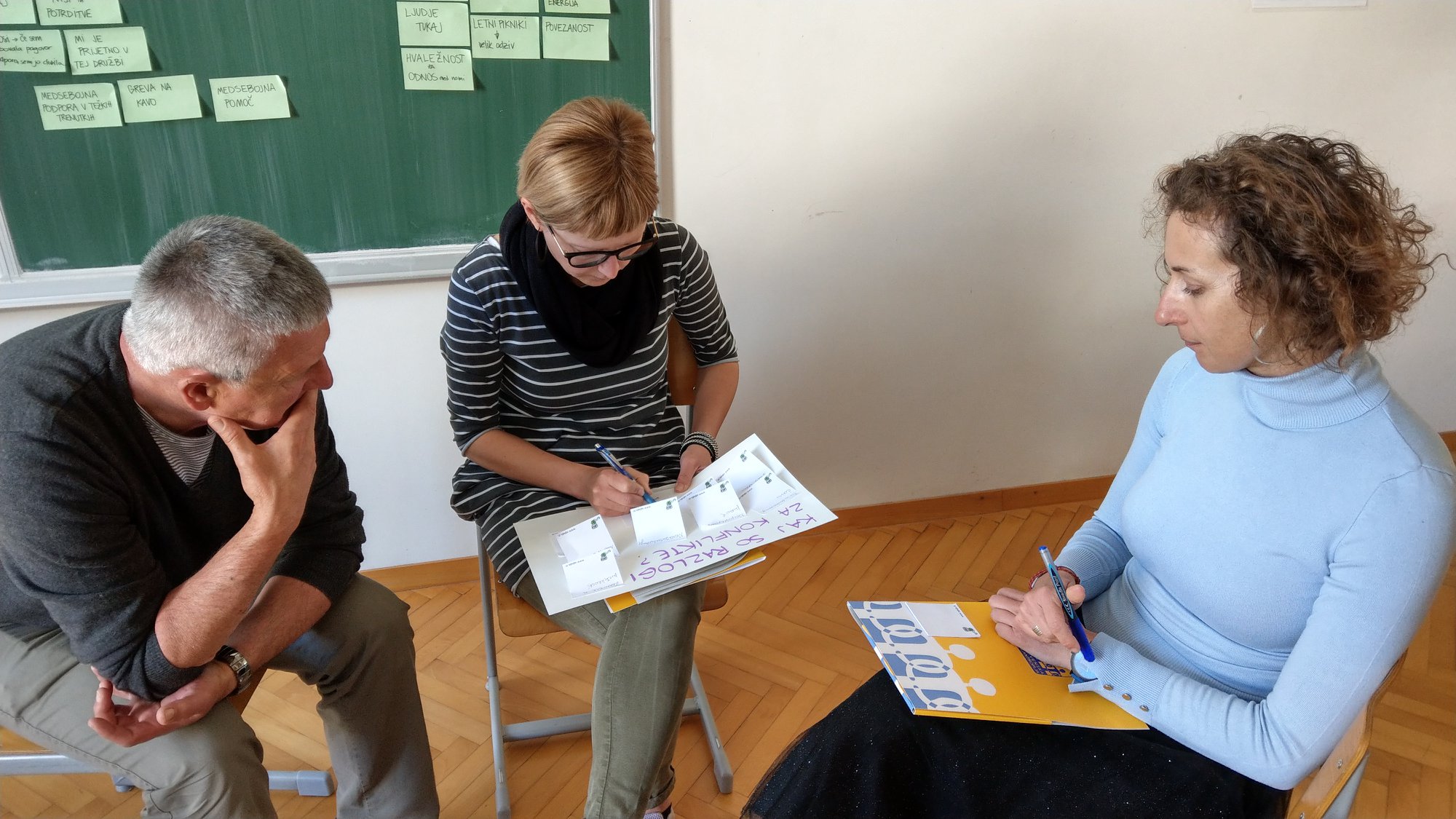 Delavnico “Reševanje konfliktov v prostovoljstvu” za mentorje in člane organov zavoda je vodila Tjaša Arko, strokovna vodja programa prostovoljstvo pri Slovenski filantropiji. Ugotavljali smo razloge za konflikte in predelovali odzivanje posameznikov na konfliktne situacije, razumevanje potreb vseh vključenih v konflikt, govorili o empatiji in samoempatiji, se naučili, kako (pomagati) vzpostavljati dialog v težavnih situacijah, kako povedati neprijetno stvar na povezovalen način ter kako ustvariti okolje, ki bo spodbujalo dobro sodelovanje.