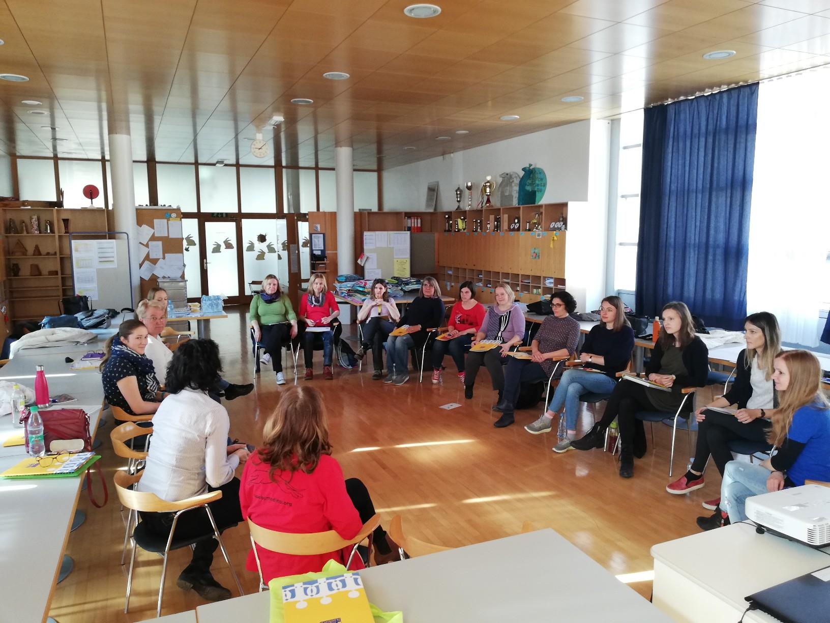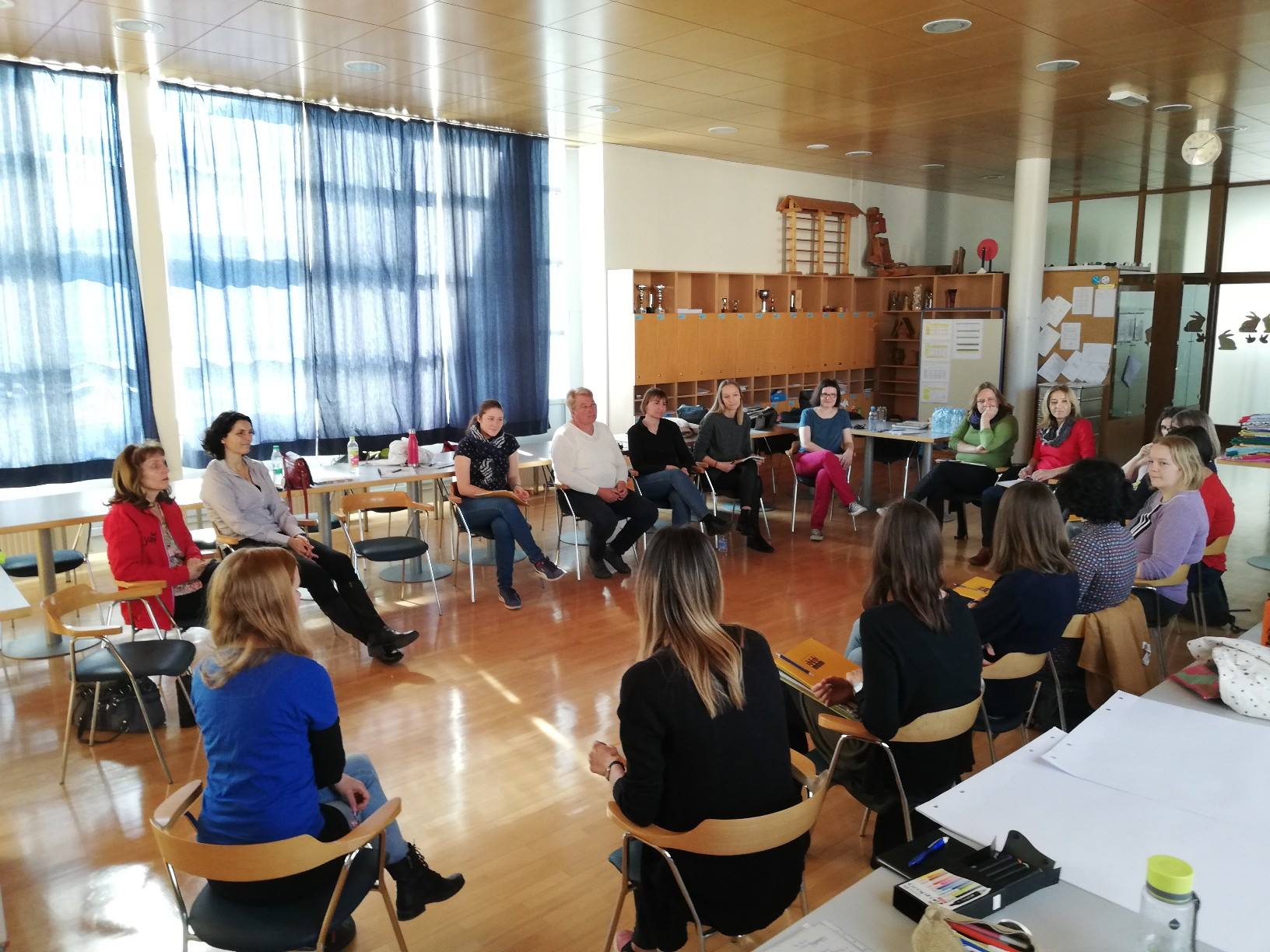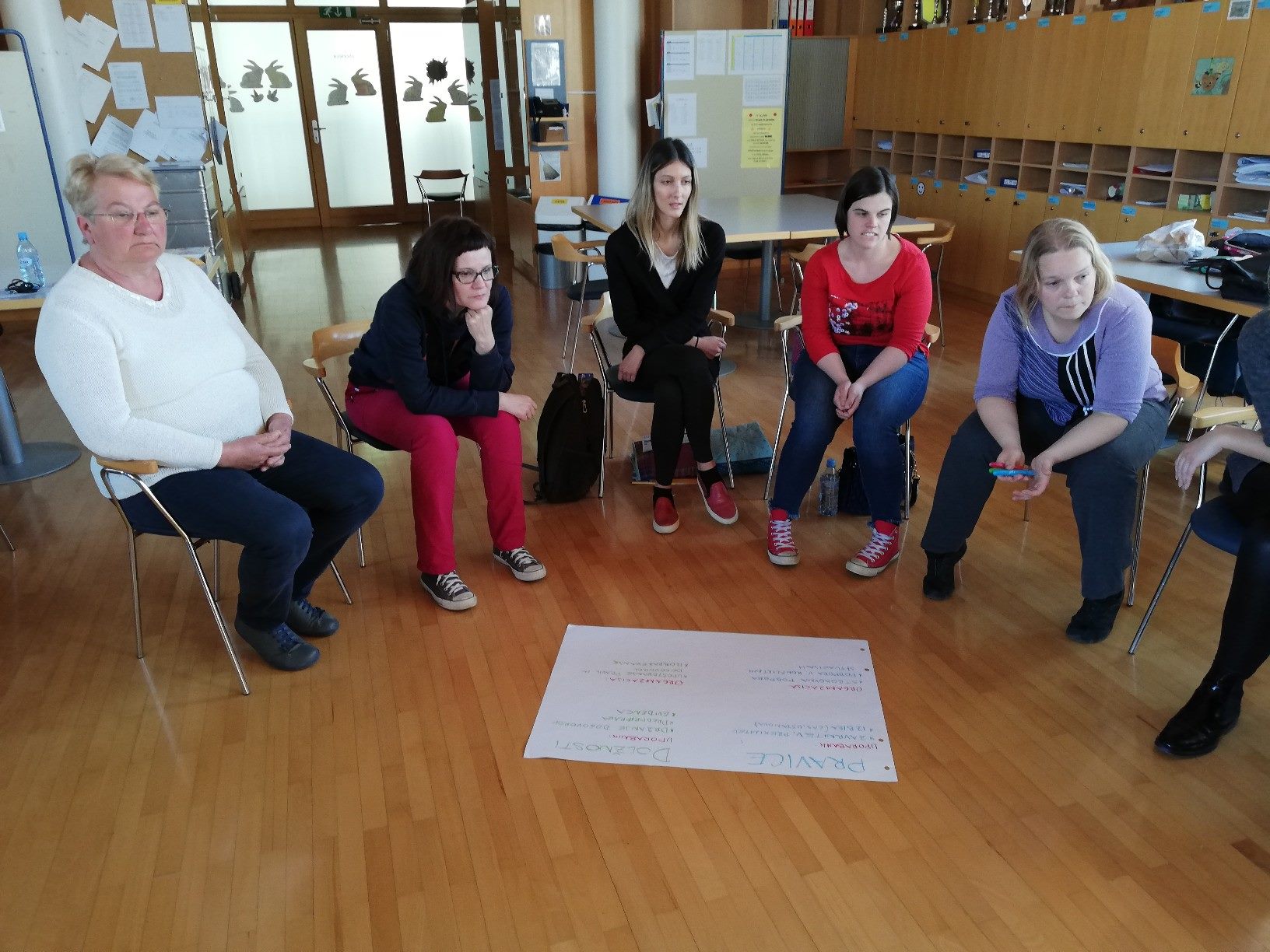 Na Osnovni šoli Hinka Smrekarja v Ljubljani smo 30.marca 2019 izvedli uvodno usposabljanje za prostovoljce, ki so se ga udeležili naši pripravniki, za terapevtske pare, mentorje pa delavnico »Reševanje konfliktov v prostovoljstvu”.